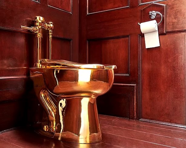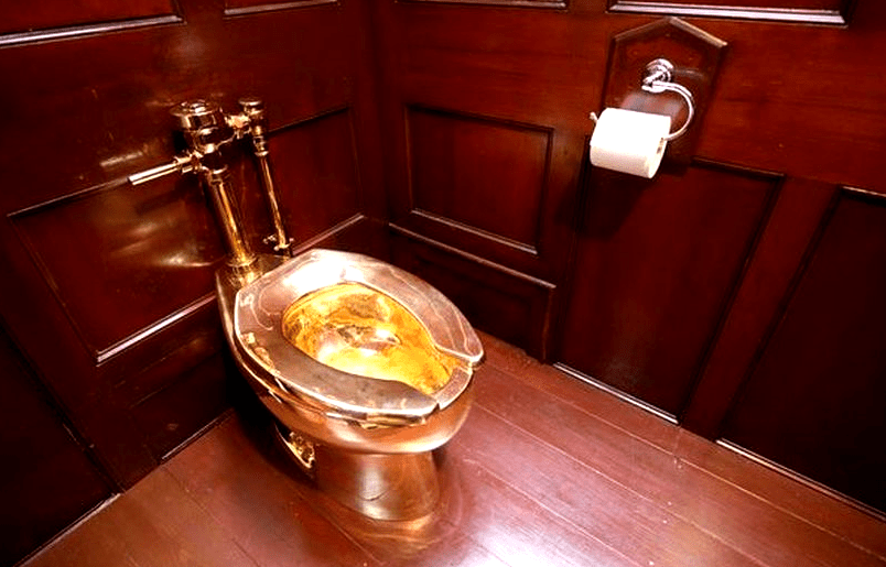 Tandas emas 18 karat yang berfungsi sepenuhnya itu merupakan karya seni hasil ciptaan artis Itali, Maurizio Cattelan. Ia dipamerkan di rumah agam di Oxfordshire, tempat kelahiran Sir Winston Churchill, sebelum dilarikan pada awal pagi 14 September 2019.