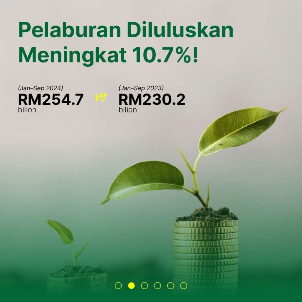 Pelaburan langsung domestik dan asing menunjukkan momentum positif. Sebanyak RM254.7 bilion pelaburan telah diluluskan dari Januari hingga September 2024, meningkat berbanding RM230.2 bilion dalam tempoh sama tahun lalu. Ini menjadi petunjuk jelas bahawa Malaysia kekal sebagai destinasi pelaburan yang kompetitif di rantau ini.