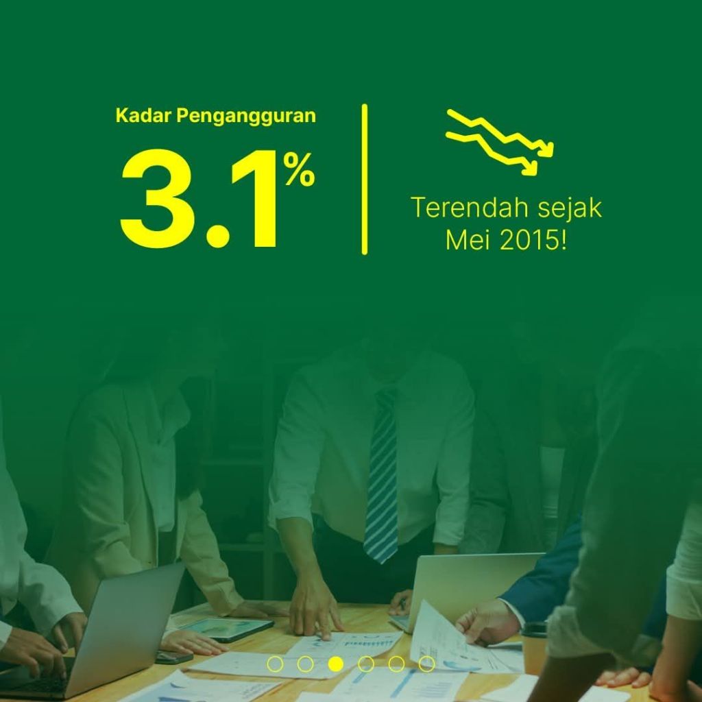 Pasaran buruh terus pulih dengan kadar pengangguran turun kepada 3.1% pada Disember 2024 – paras terendah sejak 2015. Ini sekaligus membawa lebih banyak peluang pekerjaan kepada rakyat, khususnya golongan muda dan graduan baharu.
