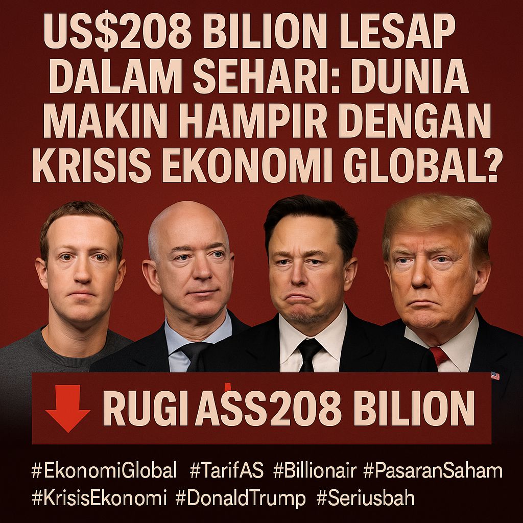 Dalam satu kejutan besar kepada pasaran kewangan global, golongan terkaya dunia mencatatkan kerugian terkumpul sebanyak US$208 bilion hanya dalam tempoh 24 jam susulan pengumuman tarif import baharu oleh Amerika Syarikat.