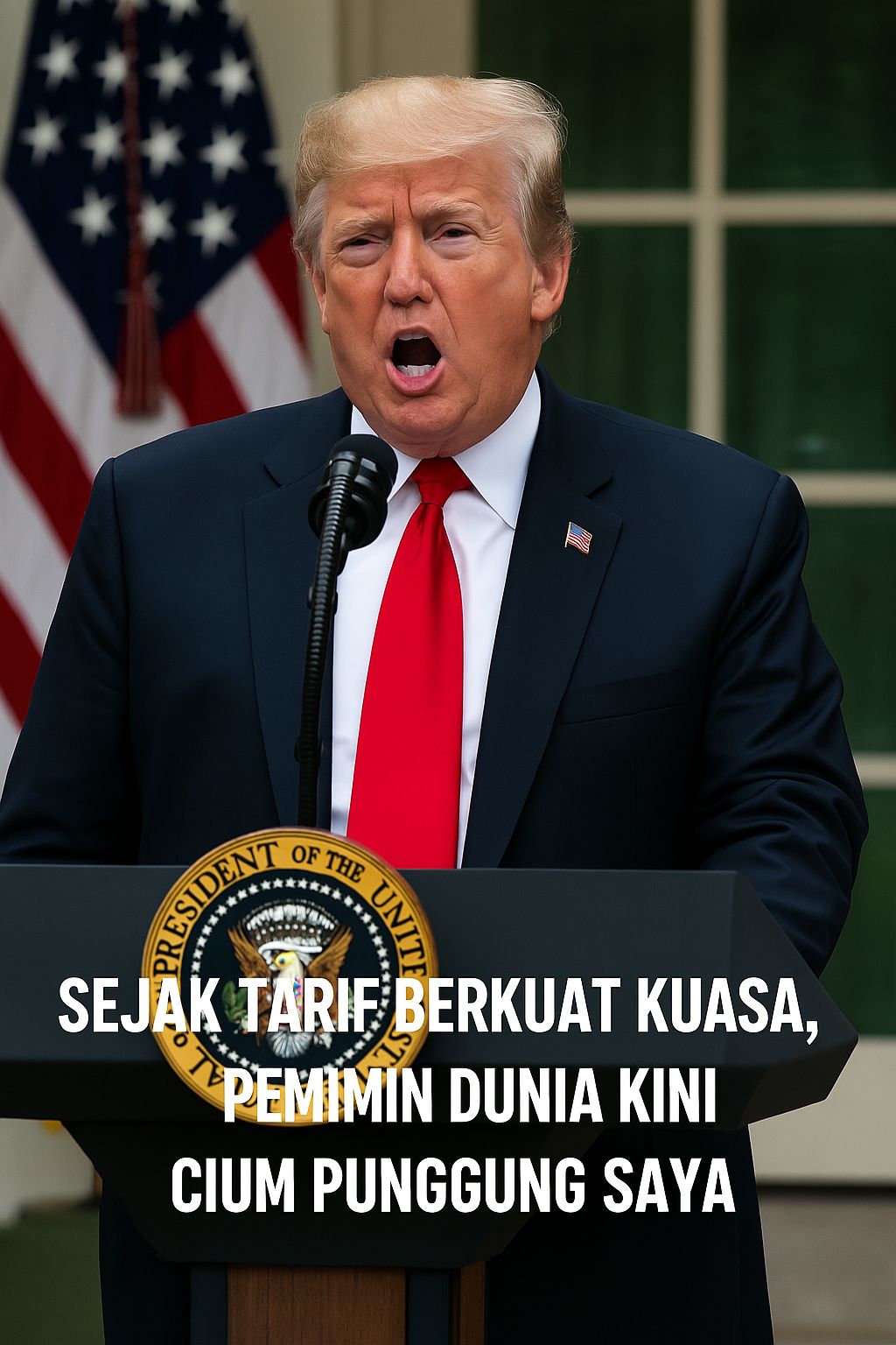 Dalam satu kenyataan berapi, Trump berkata bahawa tindakan mengenakan tarif terhadap negara seperti China dan Mexico telah menjadikan Amerika Syarikat lebih disegani di mata dunia. “Sejak tarif itu berkuat kuasa, pemimpin dunia kini cium punggung saya,” kata Trump dalam gaya selambanya yang sinonim.