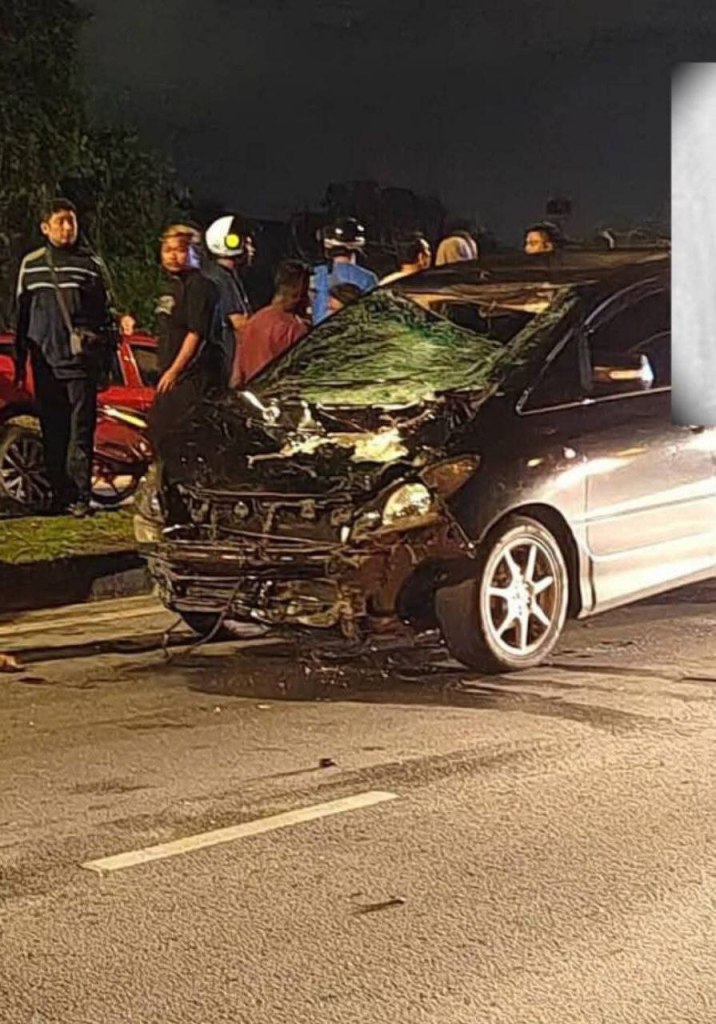 kemalangan melibatkan motosikal Honda dan sebuah Toyota Estima. Gambar Harian metro.