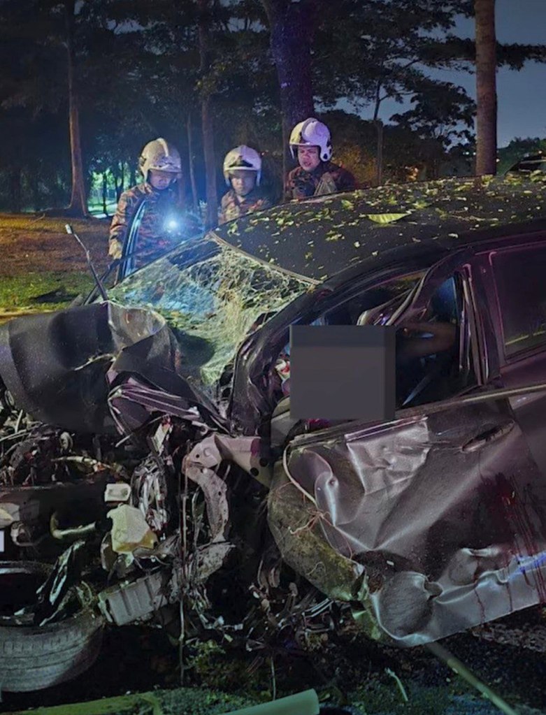 “Sebaik tiba di lokasi kejadian, kereta yang dinaiki mereka hilang kawalan lalu terbabas ke bahu kiri jalan dan merempuh sebatang pokok,” katanya.
